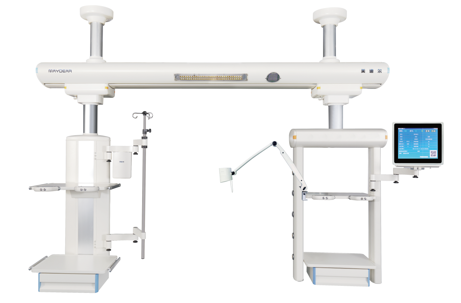 是現(xiàn)代手術(shù)室常用的一種新型實(shí)用的醫(yī)療輔助設(shè)備,其結(jié)構(gòu)緊湊,設(shè)計(jì)合理,既能電動(dòng)升降又能在一定直徑范圍內(nèi)旋轉(zhuǎn)340度,降低時(shí)醫(yī)護(hù)人員抬手可及,升高后則不影響任何工作,并配置氣動(dòng)剎車防飄移,可根據(jù)醫(yī)護(hù)人員要求,輕松移動(dòng)和鎖定塔體位置。必備的醫(yī)用氣體、吸引、強(qiáng)弱電、網(wǎng)絡(luò)輸出終端集中在平臺(tái)功能箱體上,平臺(tái)可承載一定重量的醫(yī)療儀器,是醫(yī)護(hù)人員理想的醫(yī)氣、電源、儀器平臺(tái)工作站